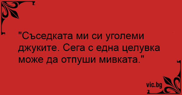 "Съседката ми си уголеми джуките. Сега с една целувка може да отпуши мивката."
