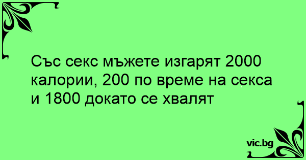 Със cekc мъжете изгарят 2000 калории, 200 по време на cekca и 1800 докато се хвалят