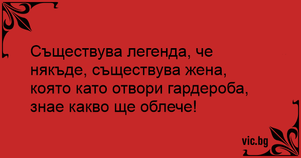 Съществува легенда, че някъде, съществува жена, която като отвори гардероба, знае какво ще облече!
