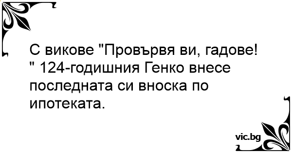С викове "Провървя ви, гадове! " 124-годишния Генко внесе последната си вноска по ипотеката.