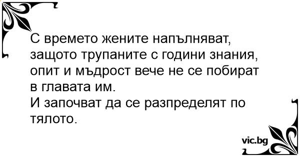 С времето жените напълняват, защото трупаните с години знания, опит и мъдрост вече не се побират в главата им.