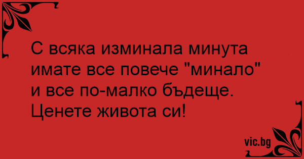С всяка изминала минута имате все повече "минало" и все по-малко бъдеще.