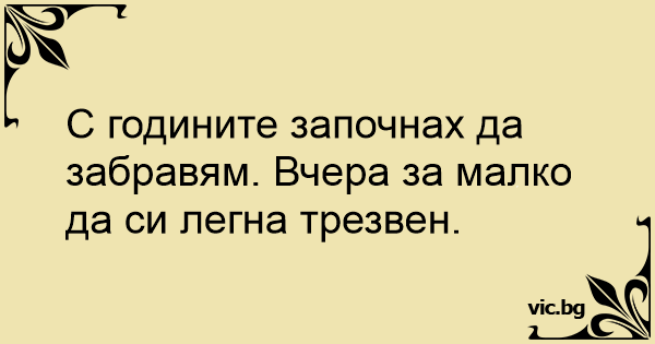 С годините започнах да забравям. Вчера за малко да си легна трезвен.