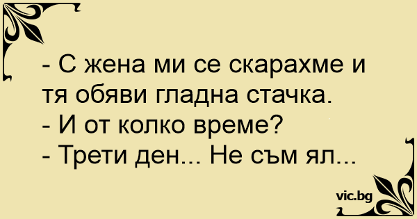 - С жена ми се скарахме и тя обяви гладна стачка.