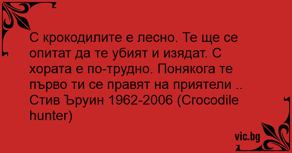 С крокодилите е лесно. Те ще се опитат да те убият и изядат. С хората е по-трудно. Понякога те първо ти се правят на приятели ..