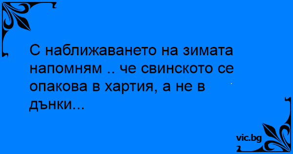 С наближаването на зимата напомням .. че свинското се опакова в хартия, а не в дънки...