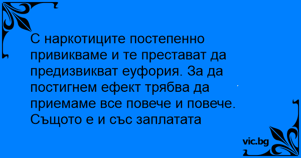 С наркотиците постепенно привикваме и те престават да предизвикват еуфория. За да постигнем ефект трябва да приемаме все повече и повече.