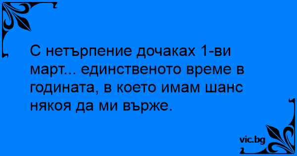 С нетърпение дочаках 1-ви март... единственото време в годината, в което имам шанс някоя да ми върже.