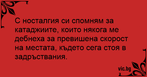 С носталгия си спомням за катаджиите, които някога ме дебнеха за превишена скорост на местата, където сега стоя в задръствания.