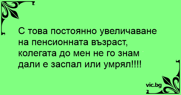 С това постоянно увеличаване на пенсионната възраст, колегата до мен не го знам дали е заспал или умрял!!!!