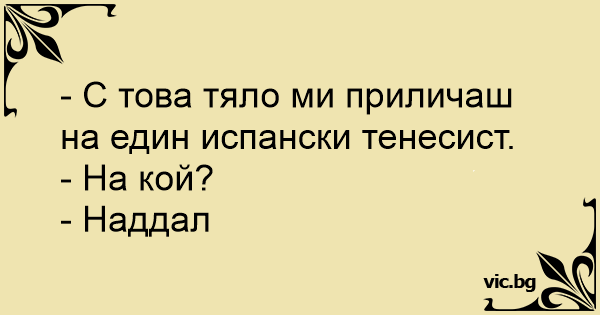 - С това тяло ми приличаш на един испански тенесист.