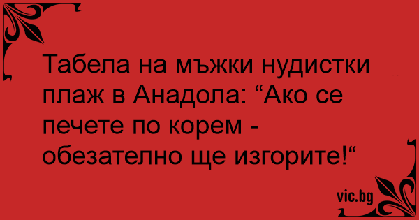 Табела на мъжки нудистки плаж в Анадола: “Ако се печете по корем - обезателно ще изгорите!“