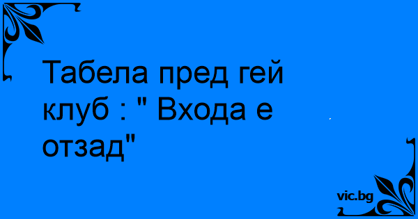 Табела пред гeй клуб : " Входа е отзад"