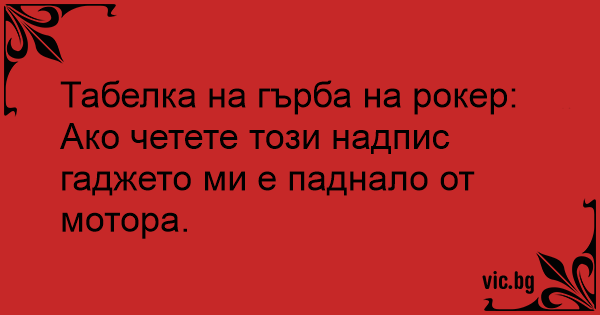 Ако четете този надпис гаджето ми е паднало от мотора.