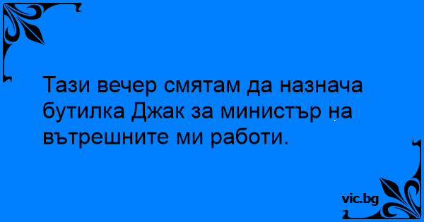 Тази вечер смятам да назнача бутилка Джак за министър на вътрешните ми работи.