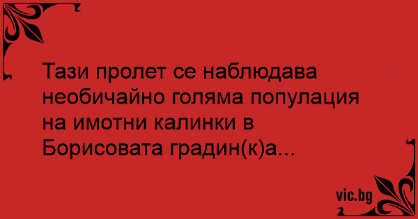 Тази пролет се наблюдава необичайно голяма популация на имотни калинки в Борисовата градин(к)а...