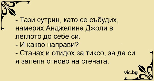 - Тази сутрин, като се събудих, намерих Анджелина Джоли в леглото до себе си.
