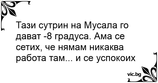 Тази сутрин на Мусала го дават -8 градуса. Ама се сетих, че нямам никаква работа там... и се успокоих
