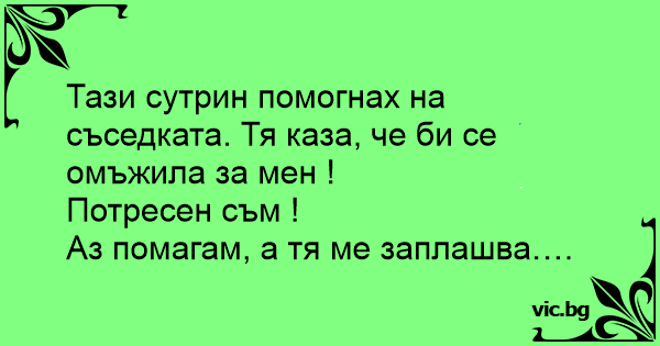 Тази сутрин помогнах на съседката. Тя каза, че би се омъжила за мен !