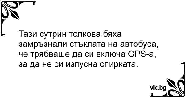 Тази сутрин толкова бяха замръзнали стъклата на автобуса, че трябваше да си включа GPS-а, за да не си изпусна спирката.