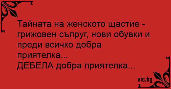 Тайната на женското щастие - грижовен съпруг, нови обувки и преди всичко добра приятелка...