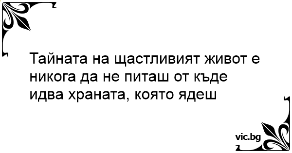 Тайната на щастливият живот е никога да не питаш от къде идва храната, която ядеш