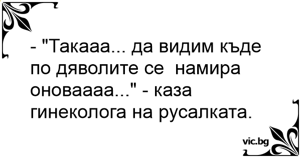 - "Такааа... да видим къде по дяволите се намира оноваааа..." - каза гинеколога на русалката.
