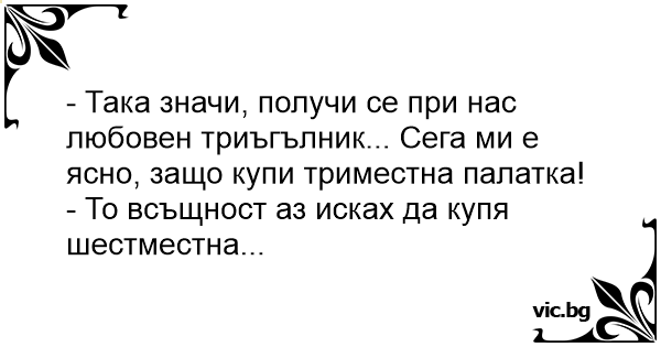 - Така значи, получи се при нас любовен триъгълник... Сега ми е ясно, защо купи триместна палатка!