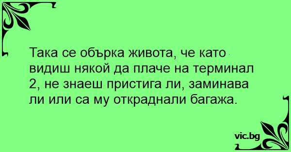 Така се обърка живота, че като видиш някой да плаче на терминал 2, не знаеш пристига ли, заминава ли или са му откраднали багажа.