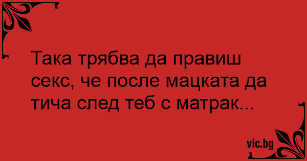 Така трябва да правиш cekc, че после мацката да тича след теб с матрак...