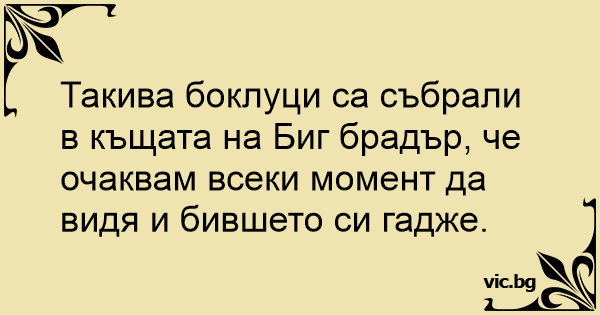 Такива боклуци са събрали в къщата на Биг брадър, че очаквам всеки момент да видя и бившето си гадже.