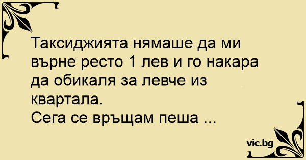 Таксиджията нямаше да ми върне ресто 1 лев и го накара да обикаля за левче из квартала.