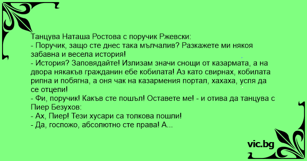 - Поручик, защо сте днес така мълчалив? Разкажете ми някоя забавна и весела история!