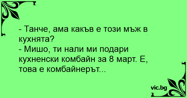 - Мишо, ти нали ми подари кухненски комбайн за 8 март. Е, това е комбайнерът...