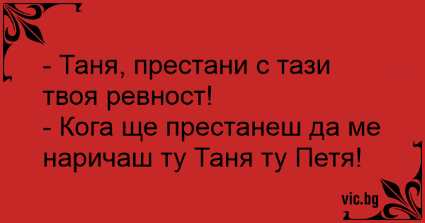 - Кога ще престанеш да ме наричаш ту Таня ту Петя!