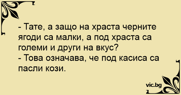 - Тате, а защо на храста черните ягоди са малки, а под храста са големи и други на вкус?