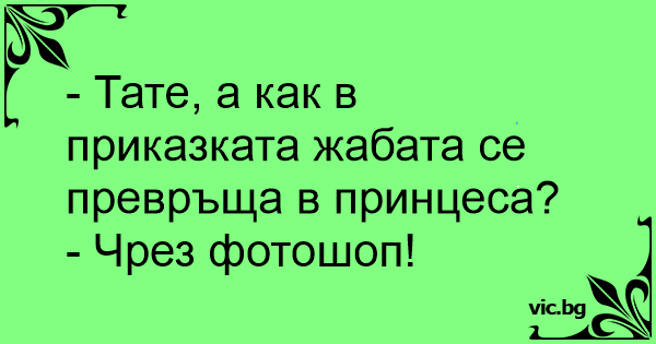- Тате, а как в приказката жабата се превръща в принцеса?