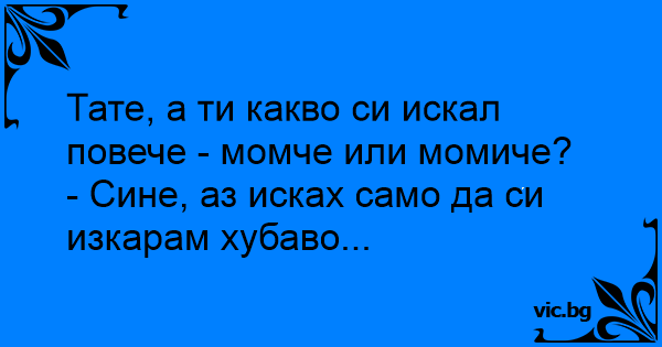 Тато ти што сакаше, машко или женско дете? - Ништо бе сине, јас само сакав убаво да си поминам!