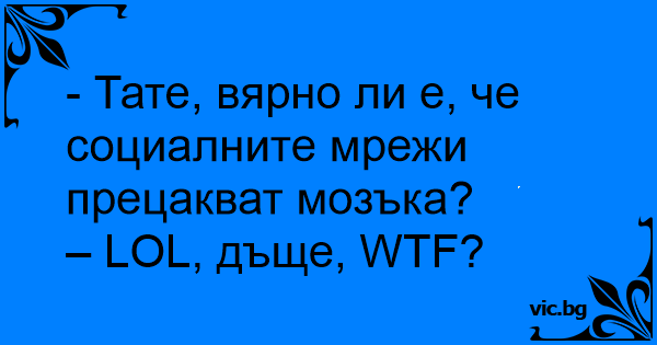 - Тате, вярно ли е, че социалните мрежи прецакват мозъка?