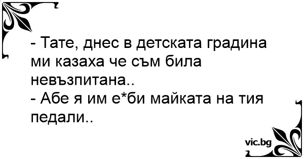 - Тате, днес в детската градина ми казаха че съм била невъзпитана..