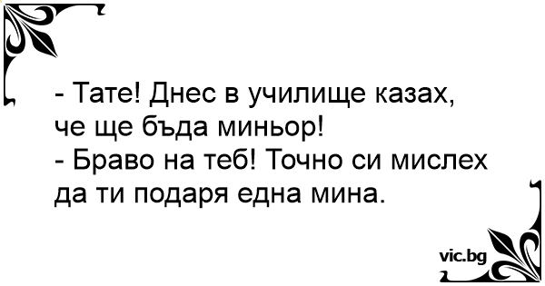- Тате! Днес в училище казах, че ще бъда миньор!