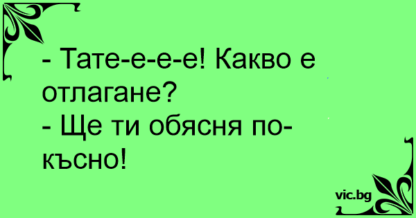 - Тате-е-е-е! Какво е отлагане?<br />- Ще ти обясня по-късно!