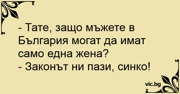 - Тате, защо мъжете в България могат да имат само една жена?