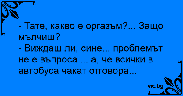 - Тате, какво е opгaзъm?... Защо мълчиш?