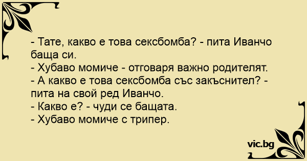 - А какво е това сексбомба със закъснител? - пита на свой ред Иванчо.