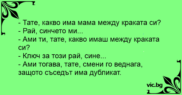 - Ами тогава, тате, смени го веднага, защото съседът има дубликат.