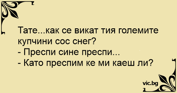 • Вицове от Facebook от нашата страница https://www.facebook.com/www.vic.bg