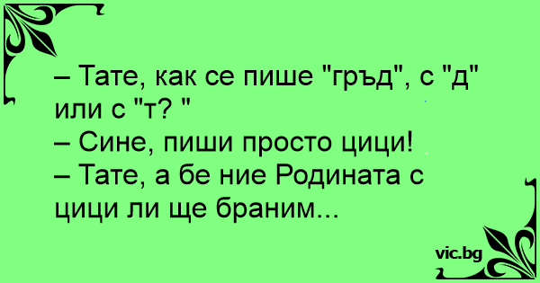 – Тате, как се пише "гръд", с "д" или с "т? "