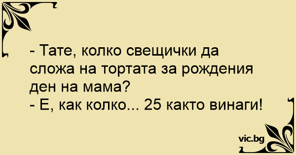 - Тате, колко свещички да сложа на тортата за рождения ден на мама?