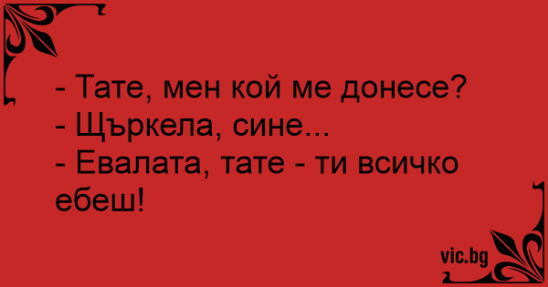 Wo kommt Fritzchen her? Πελαργός вовочка спрашивает у отца: - а как я появился на свет? - тебя... Иванчо пита баща си, от къде се е появил. - Папа, а как я появился на свет? Иванчо пита баща си. Fritzchen und sein Vater sitzen gemeinsam beim Frühstück. Fritzchen: A 6 year old boy asks his daddy: Daddy, where did I come from to this life? - You were brought by a stork. - That's strange, you have such a pretty wife, but nevertheless you're fucking a stork. Stolz kommt der Vater aus der Klinik und sagt zu seinem Sohn : "Der Storch hat dir ein kleines Schwesterchen gebracht!" Da sagt der Sohn: "Na toll, überall laufen die geilsten Weiber rum, nur mein Vater bummst´nen Storch!" El papá de Jaimito le dice a su hijo: -Oye Jaimito, te comento que ya arreglé con la cigüeña para que te traiga un hermanito! Y Jaimito contesta: -Que tonto eres papá, habiendo tantas mujeres embarazaste a ese pobre animalito? Papa zu Fritzchen: "Der Storch hat dir letzte Nacht eine Schwester gebracht." "Mensch Papi, da laufen die tollsten Frauen rum, und du vögelst den Storch!" Jasiu pyta ojca: - Tato, skąd ja się wziąłem? - No wiesz synku... Jakby Ci to powiedzieć... Bocian był i w ogóle. - Ale Ty tato głupi jesteś! Masz taką ładną żonę a bzykasz bociany? Jantje vraagt aan vader: Papa, waar kom ik eigenlijk vandaan? Vader antwoordt: "Van de ooievaar Jantje" Jantje: "De ooievaar? Er lopen duizenden schone meisjes rond, en jij neukt een ooievaar?! Lilla Olle till sin pappa: - Pappa. Hur kom jag till världen? - Jo du förstår... Det var storken som kom med dej. - Men är du dum i huvudet eller?! Utbrister Olle. Hela stan vimlar utav kvinnor,... Pappan till sonen: - Snart kommer storken med ett litet syskon till dig. Sonen: - Jäkla pucko! Hela stan är full av brudar, och du sätter på en stork! Jantje en zijn vader lopen in het park. Vraagt Jantje aan zijn vader “Papa, waar kom ik vandaan?” Waarop de vader van Jantje antwoordt “Van een ooievaar jongen” Zegt Jantje “Een ooievaar? Miljoenen... Lilla Ola, 5 år frågar sin pappa: - Pappa. Hur kom jag till världen? Pappan försöker att förklara så gott han bara kan: - Eh..ja.. jo det var så att storken kom med dej... Ola kollar förvånat på... En far siger til sønnen – “Nu kommer storken med din lillesøster” – Sønnen svarer:”Du er da en idiot, her vrimler byen med dejlige tøser, og så knepper du storken!?!” Llega Panchito con su mamá: Mami, mami, dime cómo nació mi hermanito. ¡Me lo trajo la cigueña, hijo! ¿Y yo? Tú llegastes por correo. ¿Entonces, nunca has tenido un parto normal? Pikkubasisti esittää äidilleen kysymyksen: “Mistä lapset tulee äiti?” Siihen äiti vastaa hätäisesti: “Lapset tulee haikaran kyydissä.” Pikkubasisti kysyy äidiltään toisenkin kysymyksen: “Onko isäni... En pappa kommer hem till sonen och berättar glatt: - Nu min son, kommer snart storken med ett lillsyskon till dej! Sonen tittar på pappan och svarar: - Ditt pucko! Det finns hur mycket fina... Вовочка запитує у батька - Як я з'явився? Тебе лелека приніс. Тато так багато гарних дівчат, а ти лелек трахаєш. “Mamma come sono nata io?”. “Ti ha portato la cicogna”. “E l’ha trombata il papa’?”. Fritzchen fragt: „Papa, wie bin ich auf die Welt gekommen?“ Papa: „Ein Storch hat dich gebracht.“ Fritzchen: „Du nimmst auch alles an.“ Lille Per: "Pappa, hvor kommer babyene fra"? Pappa: "Å, de kommer fra storken de gutten min". Lille per: "Det vet jeg vel, men hvem er det som knuller storken"? Przychodzi mały Jasiu do taty i pyta: - Jak ja się znalazłem na świecie? Tata myśli co mu powiedzieć. - Jasiu, bocian Cię przyniósł. - Tato, czemu Ty jesteś taki głupi? - Jasiu, dlaczego tak... Petriukas klausia tėvo: - Tėti, iš kur aš atsiradau? - Tave gandras atnešė, - atsako tėvas. - Keista... Turi gražią žmoną, o dulkiniesi su gandrais! Ein 5-jähriger wendet sich an seinen Vater. "Papa, ist es wahr, daß die kleinen Kinder von den Störchen gebracht werden?" - "Ja mein Sohn, das ist wahr!" - "Aber wer fickt dann die Störche?"